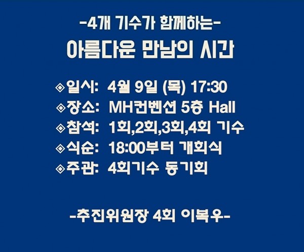 행사관련 문의처 : 4회 기수 사무국장 백병기 010-3590-1640